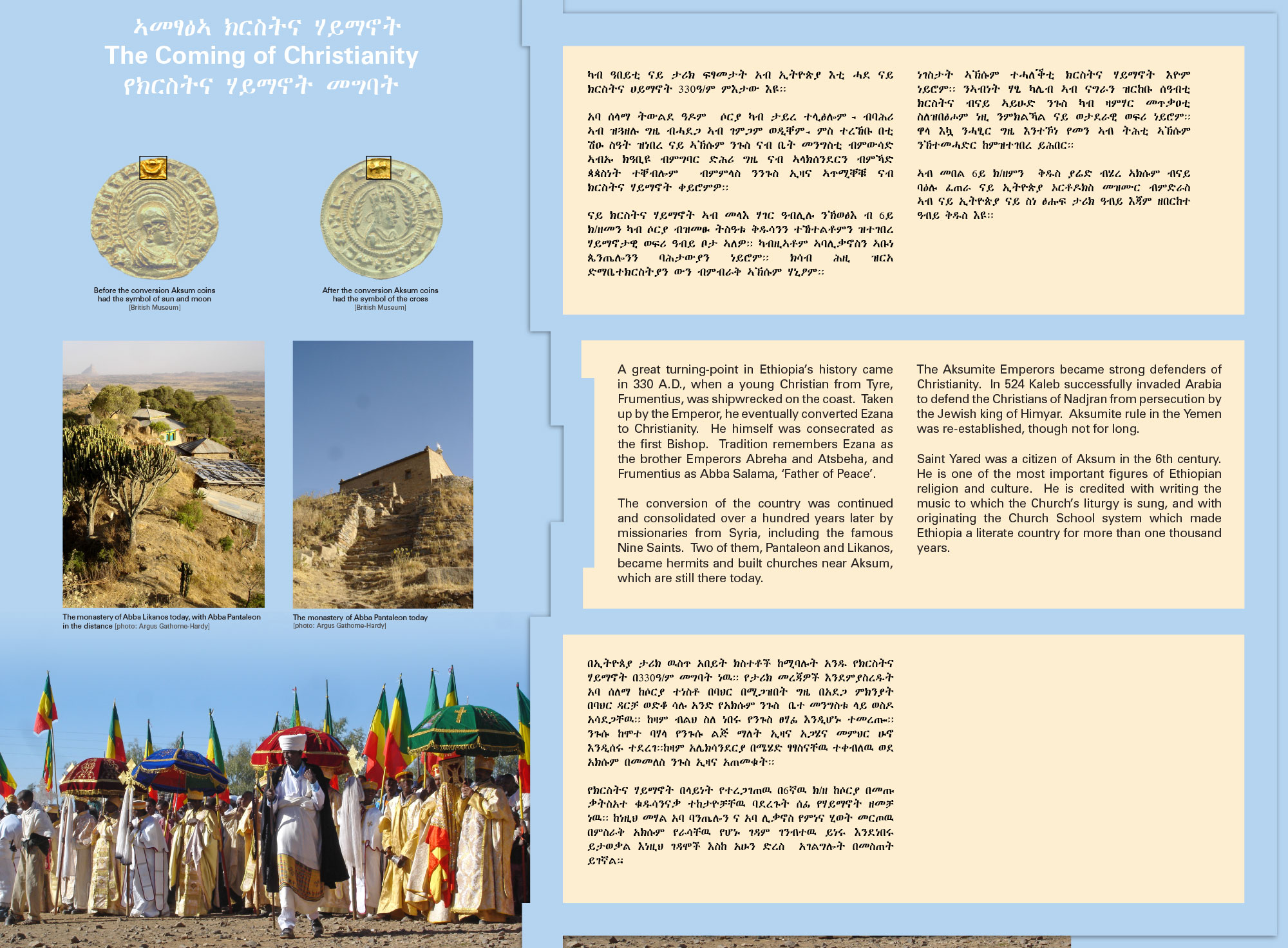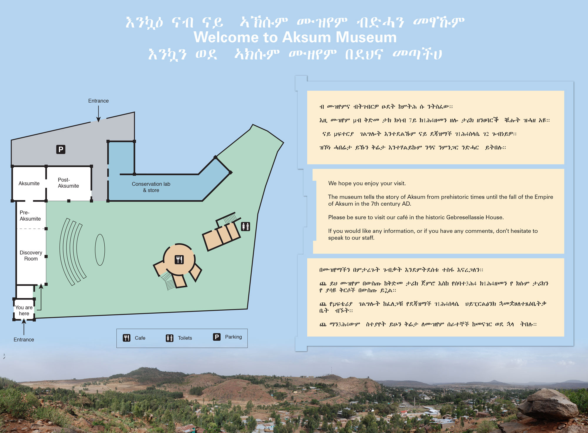 The project involved sourcing content, translators and printers as well as designing the panels. The inspiration for the design was found in traditional Aksumite architecture
