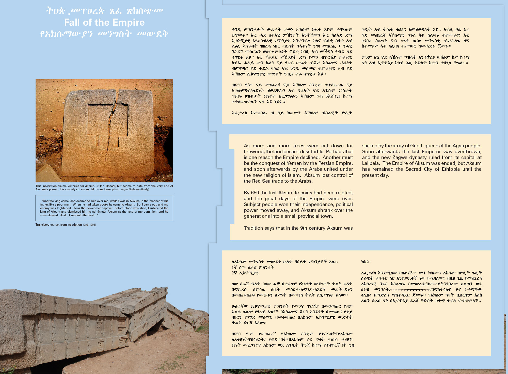 Design of exhibition panels for a newly built museum in Aksum, Ethiopia.